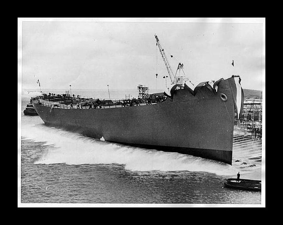 Croatan AVG-14 on April 4th 1942 going down the ways by Western Pipe and Steel Co.,San Francisco,Ca